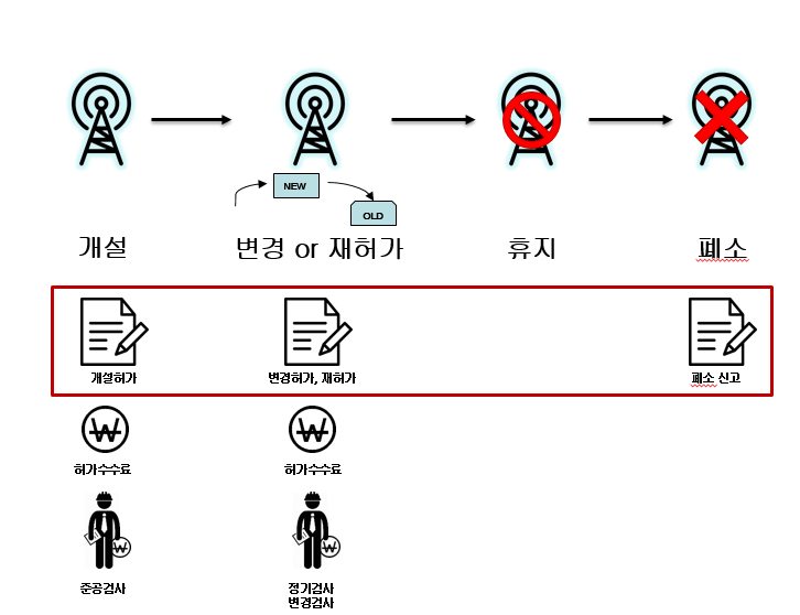 그외의 무선국은 최초 개설될 때 개설허가가 필요하고, 그에 따른 허가수수료와 개설 후 준공검사를 받습니다.